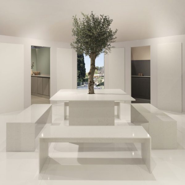 La collezione Venantis è pensata per offrire superfici sostenibili di grande fascino: le lastre sono prodotte al 100 % con inerti non quarziferi riciclati pre‑consumo, miscelati con un legante in parte di origine vegetale. Il processo di vibrocompressione sottovuoto garantisce elevate prestazioni tecniche: i materiali sono facili da lavorare, non assorbono macchie, non si graffiano e resistono al calore fino a circa 180 °C. Le superfici Cosmolite® sono inoltre certificate per il contatto alimentare e a basse emissioni di VOC.