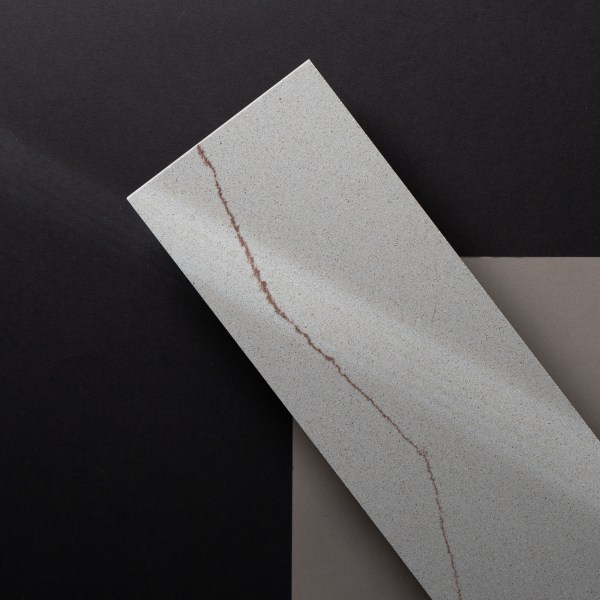 Grey Argo CMT interpreta il tema delle superfici venate con una palette delicata: il fondo è grigio chiaro attraversato da sottili venature marroni, che conferiscono alla lastra un aspetto materico ma raffinato. La vena passa attraverso tutto lo spessore della lastra, creando continuità estetica anche nei tagli e nelle lavorazioni. Questa combinazione cromatica rende Grey Argo ideale per interni dove si voglia un tocco naturale e luminoso, capace di dialogare con legni chiari e arredi moderni.