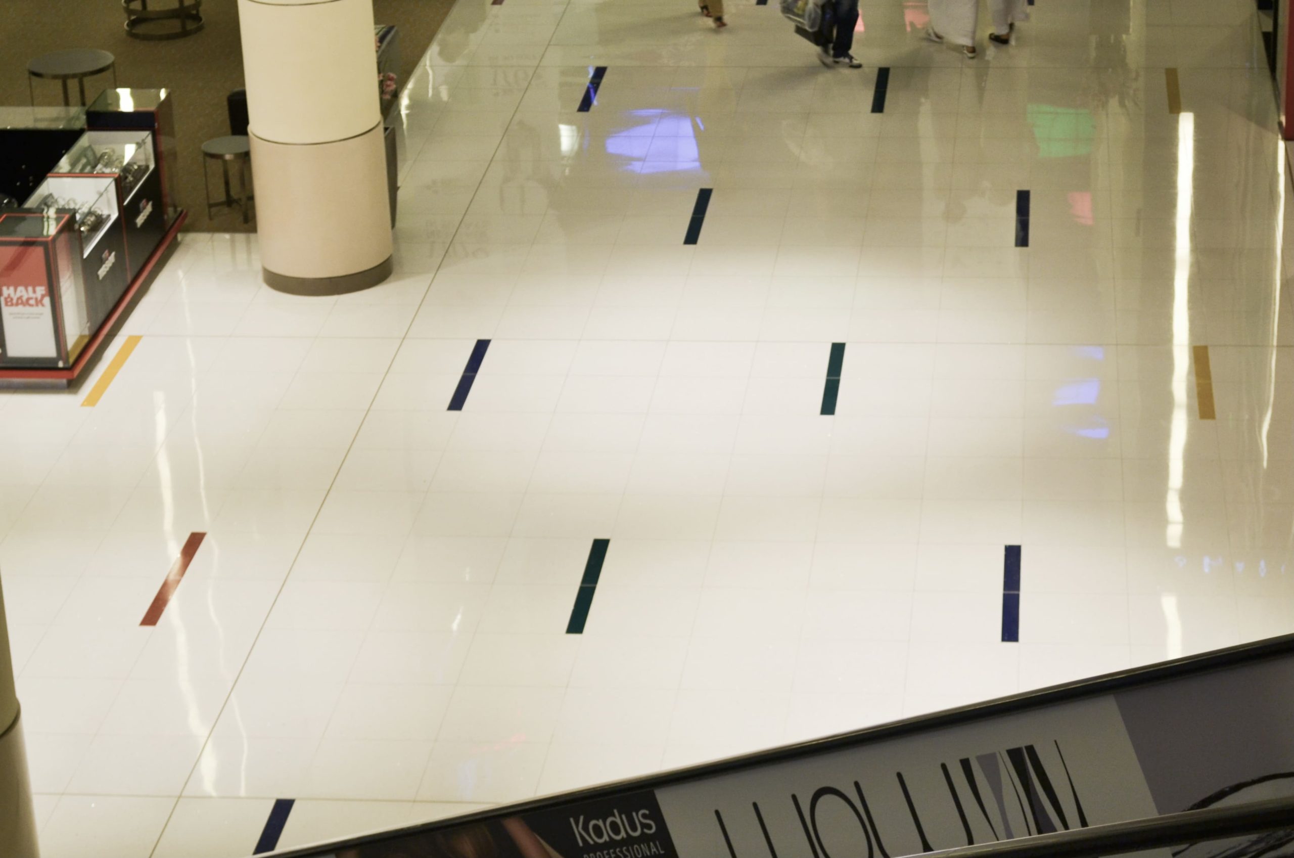 L’essenza è nel nome: Inserti è la proposta di lastre in quarzo ricomposto che, nella loro composizione, contano anche una percentuale di materiale diverso. La scelta per i pavimenti lussuosi del Dubai Mall è ricaduta nella proposta Lido, con base bianca e inserti ottenuti dalla madreperla riciclata, colorazione tra le più storiche e eleganti della gamma Stone Italiana. I pavimenti in quarzo sono stati posati in formato 125 x 125 cm e intervallati da inserti più stretti nelle tinte nero, oro e porpora, realizzati con lavorazione Custom appositamente per questo progetto commerciale.